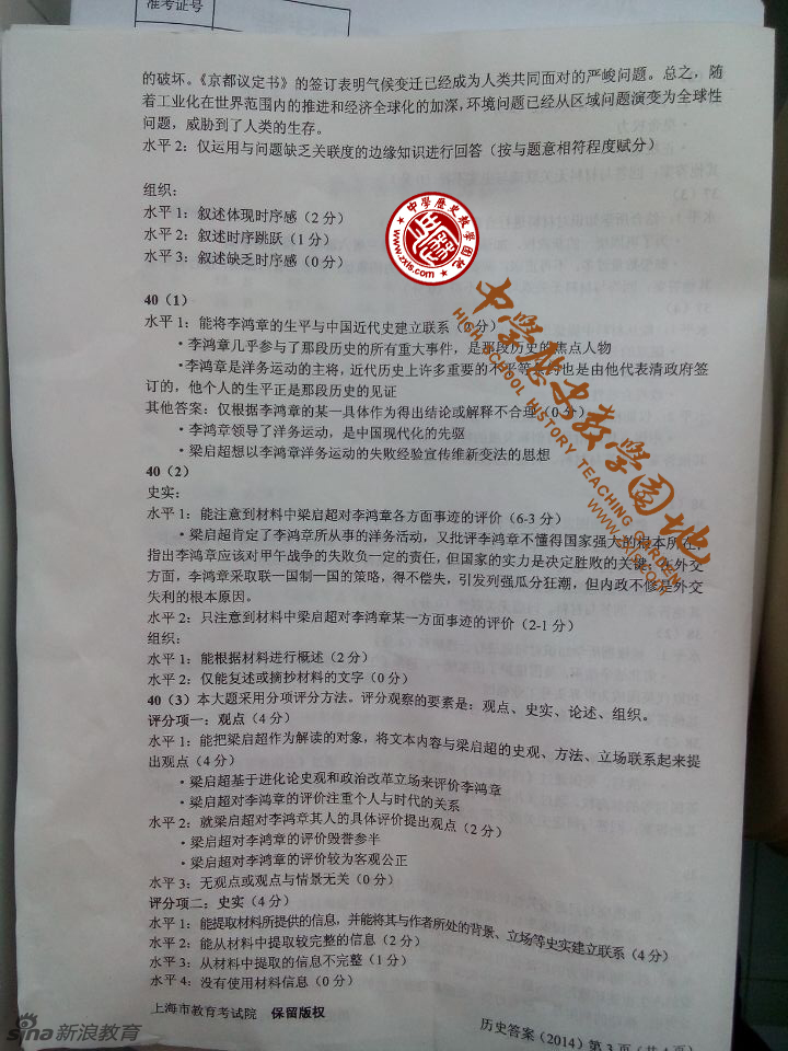 2014年高考上海歷史試題及答案(高清圖片版)(12)