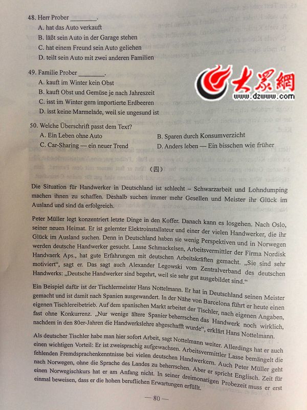 2014年山東高考德語試題及答案(高清版)(8)