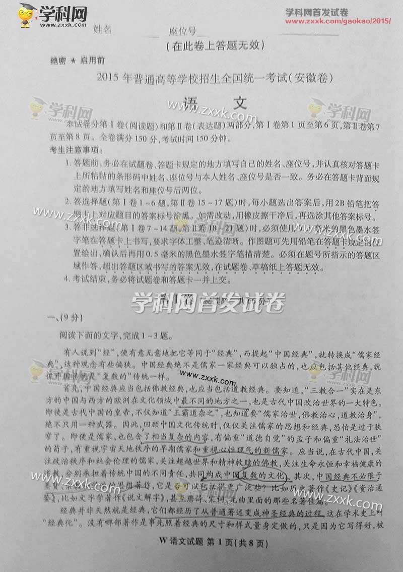 2015年安徽高考將于6月7日至8日舉行,參加安徽高考的考生請(qǐng)注意,2015年安徽高考語(yǔ)文試題及答案將于考試之后公布,屆時(shí)考生可在2015全國(guó)高考試題及答案解析匯總頁(yè)中進(jìn)行查詢!育路高考網(wǎng)將在第一時(shí)間公布2015安徽高考試題及答案,敬請(qǐng)考生隨時(shí)關(guān)注!最后預(yù)祝大家高考取的好成績(jī)。