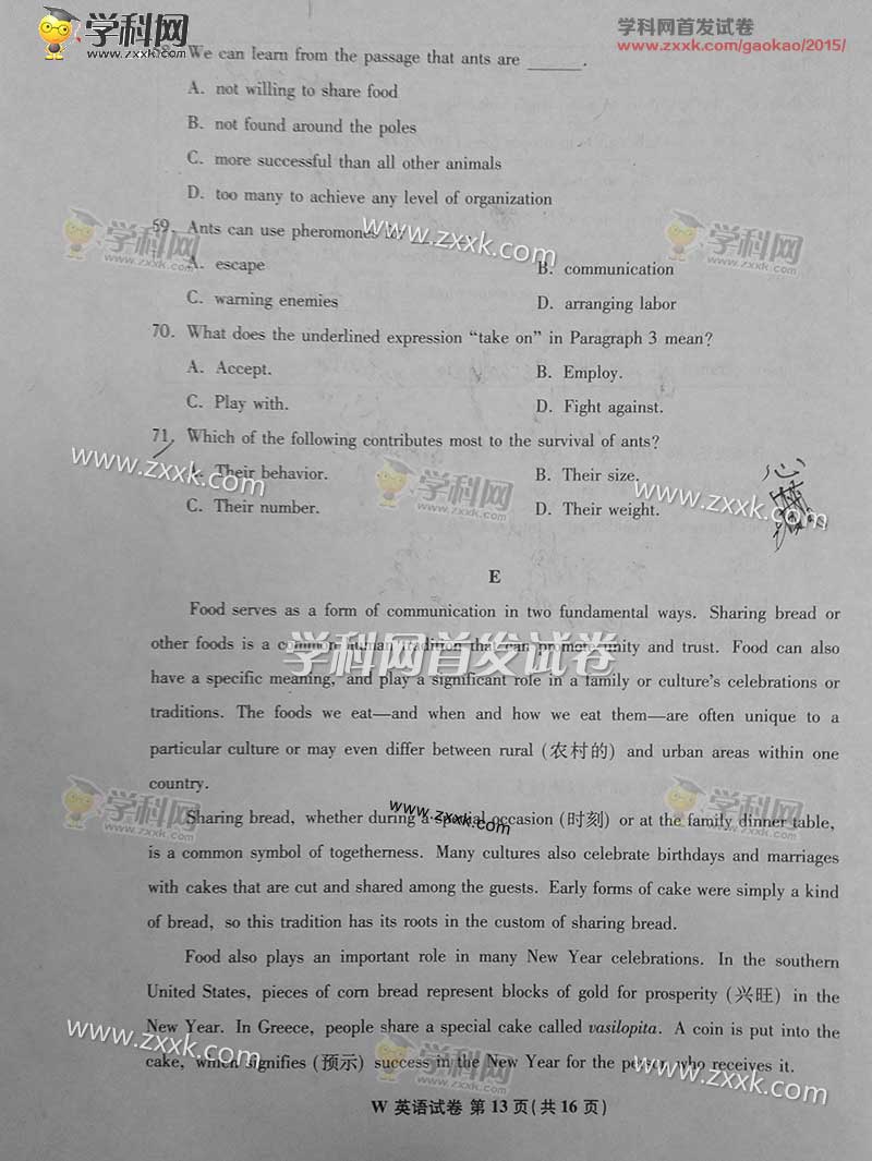 2015年安徽高考英語(yǔ)試題及答案解析(13)