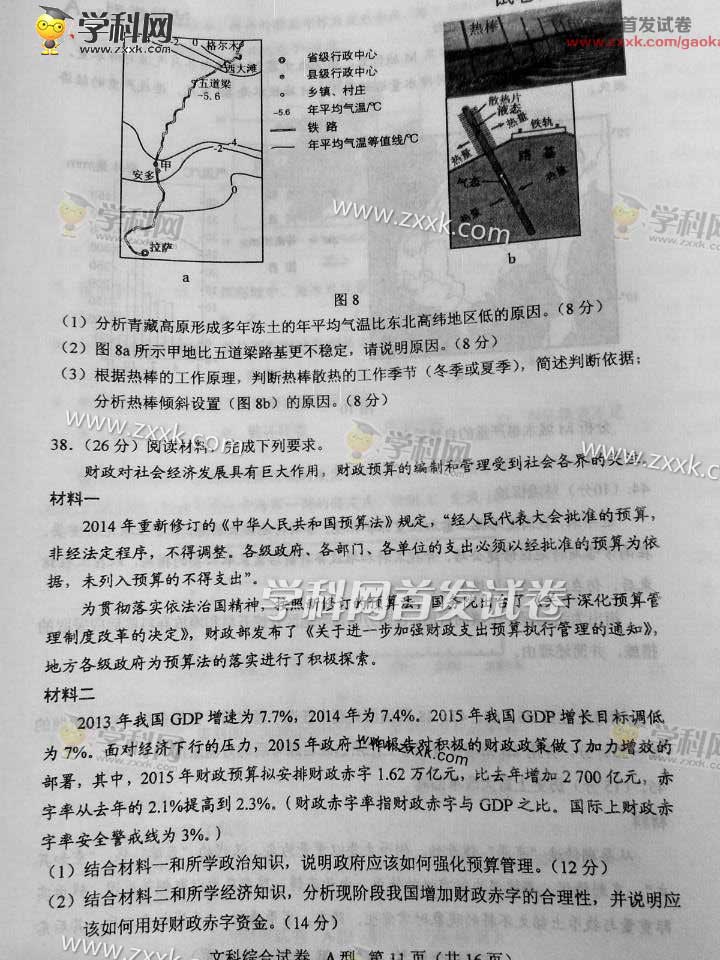 2015年新課標(biāo)I文科綜合全國(guó)卷及答案解析