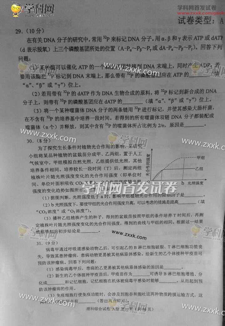 2016年福建高考理綜真題及答案(10)