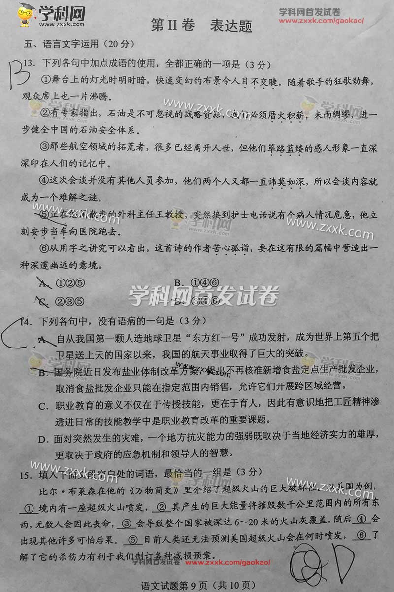 2016年吉林高考語(yǔ)文真題及答案(9)