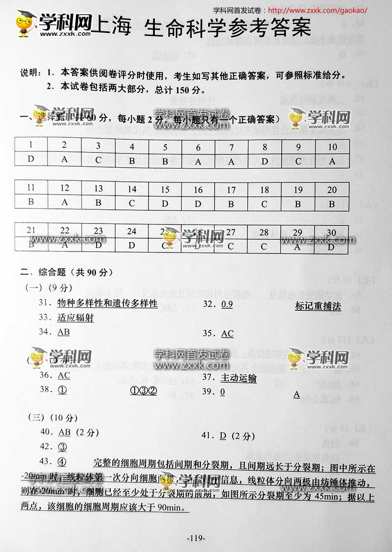 2016年上海高考生物真題及答案(15)