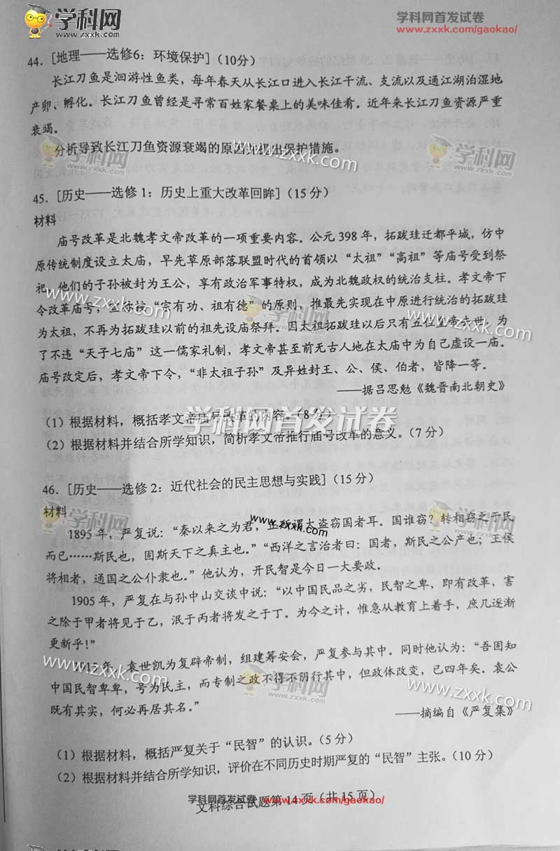 2016年全國卷Ⅲ文綜試題及答案解析(14)