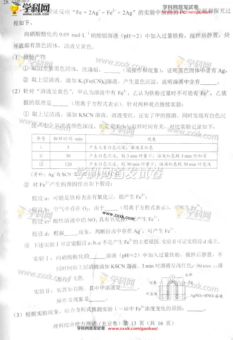 2017年北京高考理綜真題及答案(13)