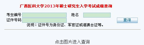 點(diǎn)擊進(jìn)入>>廣西醫(yī)科大學(xué)2013年考研成績查詢?nèi)肟?/span>