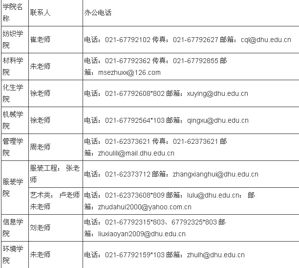 東華大學(xué)2014年接收外校推免生各學(xué)院聯(lián)系方式