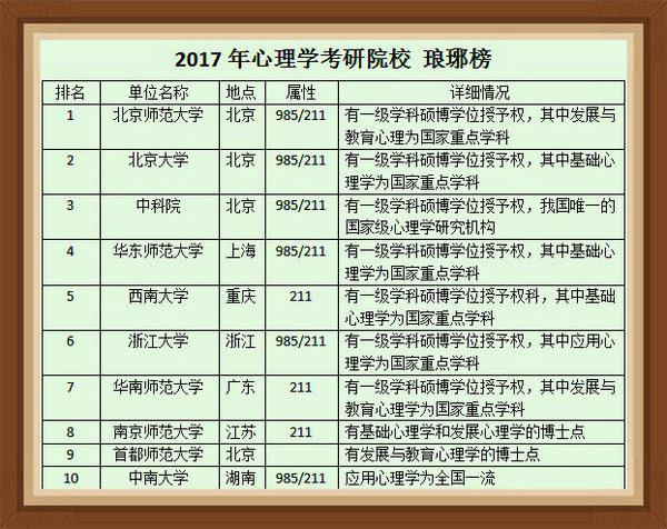 2017年心理學考研十大院校排名