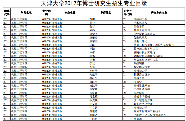 天津大學(xué)2017年碩士研究生招生專業(yè)目錄