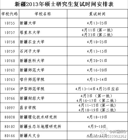 2013年碩士研究生招生入學(xué)考試已經(jīng)進(jìn)入到調(diào)劑復(fù)試階段。新疆各碩士研究生招生單位復(fù)試工作4月陸續(xù)展開。考研復(fù)試在細(xì)節(jié)上有很多需要注意的事項(xiàng),請(qǐng)廣大考生及時(shí)登陸相關(guān)院校網(wǎng)站了解相關(guān)信息,做好相關(guān)復(fù)試準(zhǔn)備工作。