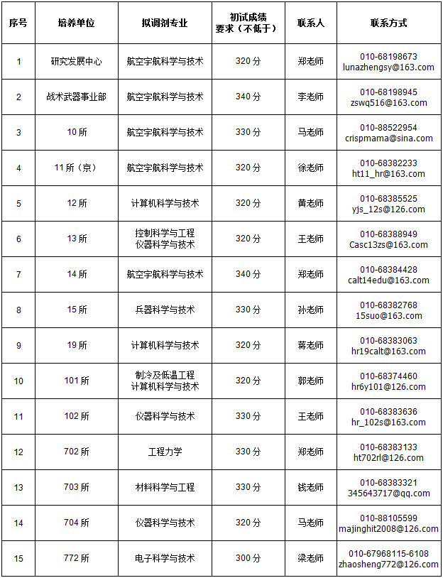 請有志于祖國航天事業(yè)并符合我院調(diào)劑條件的優(yōu)秀考生速與我們聯(lián)系!我院將結(jié)合考生初試成績及考生個人綜合情況擇優(yōu)發(fā)出復(fù)試通知。