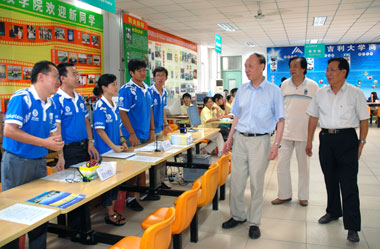 8月3日,下午17點(diǎn)30分,一天的迎新工作接近尾聲,北京吉利大學(xué)校長江樹人教授,副校長李克安教授,教務(wù)長姜國忠教授一起來到了迎新大廳看望慰問迎新工作人員,了解各學(xué)院的迎新工作進(jìn)展情況。