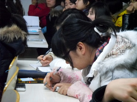 現(xiàn)場同學(xué)在認真聽講做筆記