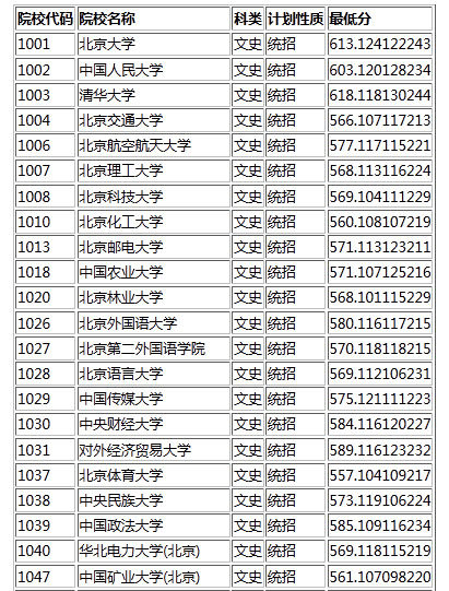 山西省2012高招本科第一批A類院校投檔線(文史類)