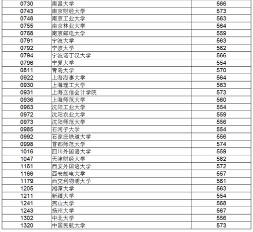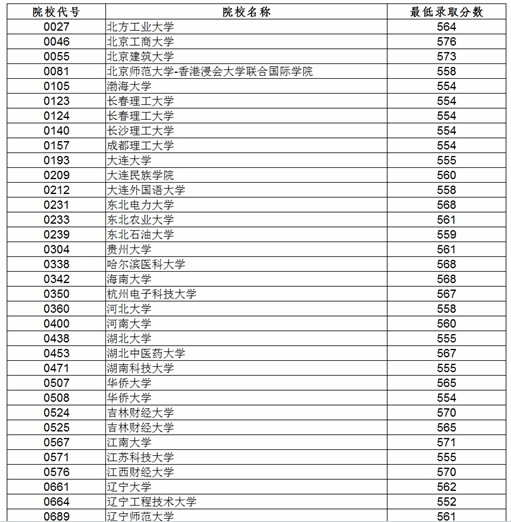 遼寧文史類一批本科B段院校最低錄取分?jǐn)?shù)線