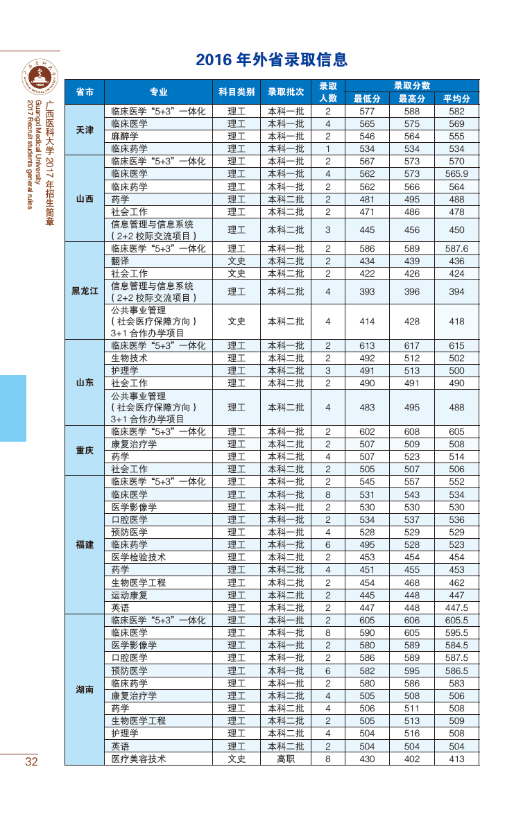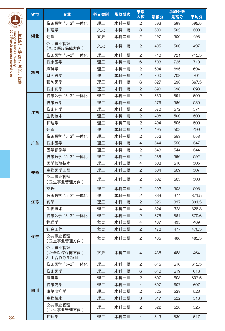 廣西醫(yī)科大學(xué)2017年招生錄取分數(shù)線