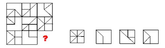 第一種題型:圖形推理。每道題給出一套或兩套圖形,要求應(yīng)試者認(rèn)真觀察找出圖形排列的規(guī)律,選出符合規(guī)律的一項(xiàng)。
