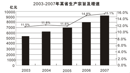 2.該省2007年比2004年生產(chǎn)總值增長(zhǎng)率提高了: