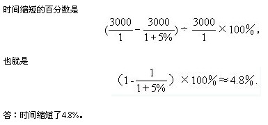 例: 小明訓(xùn)練 3000米賽跑,如果速度提高 5%,那么時間縮短百分之幾?(百分數(shù)保留一位小數(shù).)