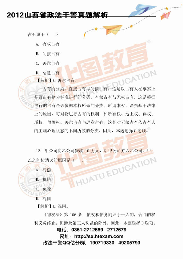 2012山西政法干警考試民法真題及參考答案解析