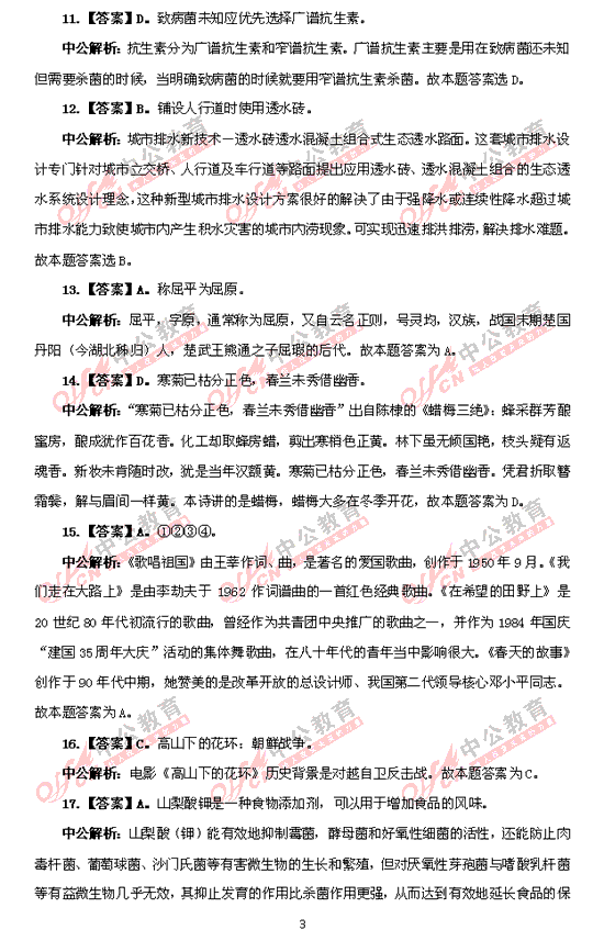 天津政法干警(專(zhuān)科)行測(cè)常識(shí)判斷答案解析