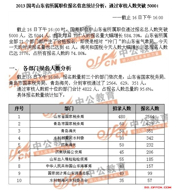 2013國(guó)考山東職位16日?qǐng)?bào)名統(tǒng)計(jì)人數(shù)突破5000