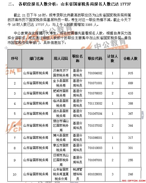 山東職位報(bào)名人數(shù)已達(dá)38464人22日有望突破4萬(wàn)人(截止21日16時(shí))