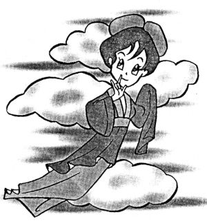 躺下不久,正看著天空, 忽然看見一個白衣女子從空中慢慢飄流下來。