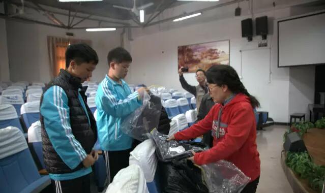 北方人都知道,十一已過(guò),就是秋風(fēng)起秋夜涼了。這個(gè)時(shí)節(jié),北京的晨午溫差是相當(dāng)大。對(duì)于來(lái)北京讀書(shū)的貴州學(xué)生來(lái)說(shuō),這是個(gè)不大不小的考驗(yàn)。不過(guò),這批幸運(yùn)寶貝兒可不用為此分神。因?yàn),有人早就提前想到了這些情況,為他們送來(lái)了御寒的棉衣。這位善良的好心人就是多年來(lái)一直關(guān)注我校貧困學(xué)子的馮平女士。