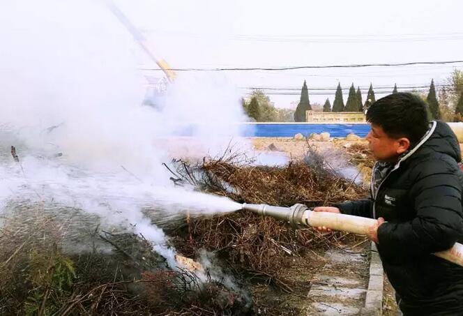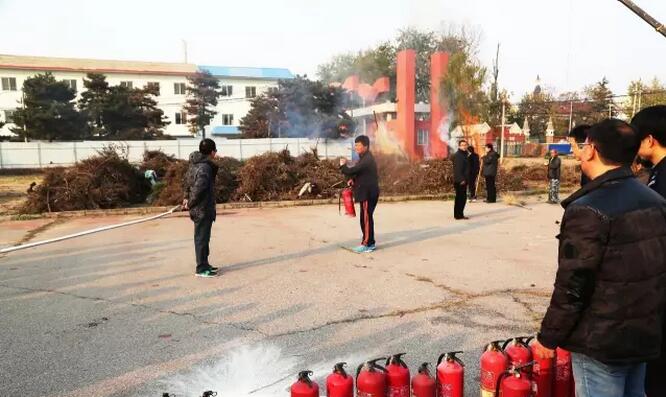 下午三點(diǎn),演習(xí)開(kāi)始。各部門主管、安全員身先士卒,立即按照預(yù)定步驟開(kāi)始演練。他們先把滅火器搖動(dòng)數(shù)次,使瓶?jī)?nèi)干粉松散;然后除掉鉛封,拔下保險(xiǎn)栓,沖到火堆上風(fēng)口跟前;壓下把手,攥緊噴管,對(duì)準(zhǔn)火焰根部噴射。其他人員也有序輪番上陣,實(shí)地操練。火堆很快就被撲滅了。為防止復(fù)燃,又使用消防水帶進(jìn)行掃尾,最后再用鐵锨、耙子等工具徹底清理火場(chǎng)。