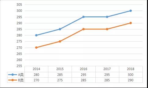 由于非全日制研究生的專業(yè)多數(shù)都是專業(yè)碩士,所以小編帶大家看一下2014-2018年專碩國家線走勢,看完之后,自己心里要有點(diǎn)數(shù)。
