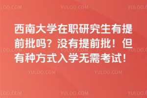 西南大學(xué)在職研究生沒(méi)有提前批。其在職研究生分為同等學(xué)力申碩和非全日制研究生兩種類型,同等學(xué)力申碩隨時(shí)可報(bào)名,非全日制研究生報(bào)名參考國(guó)家規(guī)定時(shí)間(一般在每年10月)。學(xué)校開(kāi)設(shè)基礎(chǔ)獸醫(yī)學(xué)、經(jīng)濟(jì)法學(xué)等多種專業(yè),學(xué)制1.5年,學(xué)費(fèi)3萬(wàn)元!