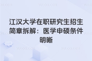 江漢大學(xué)在職研究生同等學(xué)力申碩醫(yī)學(xué)(專碩)招生簡章涵蓋報考條件、課程設(shè)置、申碩流程等。要求本科有醫(yī)學(xué)相關(guān)學(xué)位,課程線上學(xué)習(xí),通過統(tǒng)考、論文答辯等可獲碩士學(xué)位,適合有提升需求的在職醫(yī)務(wù)工作者!