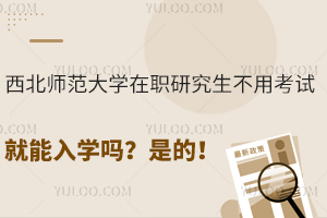 西北師范大學(xué)在職研究生不用考試就能入學(xué)嗎?采用免試入學(xué)方式,考生只需滿足學(xué)歷和工作經(jīng)驗(yàn)要求,通過資格審核即可入學(xué)。學(xué)校實(shí)行全年招生政策,報名時間靈活。學(xué)員完成課程學(xué)習(xí)并修滿學(xué)分后,可獲得結(jié)業(yè)證書;滿足申碩條件的學(xué)員通過全國同等學(xué)力人員申請碩士學(xué)位統(tǒng)一考試及論文答辯后,可獲得碩士學(xué)位證書!